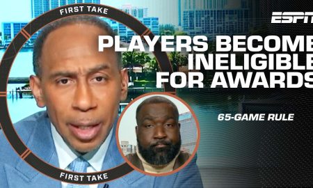 On First Take, Stephen A. Smith and Kendrick Perkins debate whether a 65-game rule...