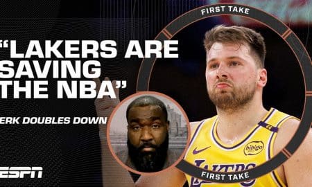 On First Take, Kendrick Perkins defends his stance that the Los Angeles Lakers are saving the NBA. Then Stephen A., Elle Duncan...