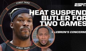 Stephen A. Smith and Shams Charania join Molly Qerim on First Take to react to Jimmy Butler’s suspension and LeBron James and...