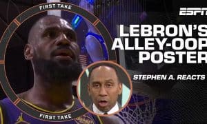 On First Take, Stephen A. Smith gives his quick take on LeBron James’ alley-oop dunk over Jonas Valanciunas in the Los Angeles...