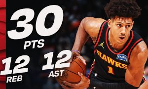 Jalen Johnson become the 2nd player in Hawks franchise to record back-to-back triple doubles, he joins: Bob Sura (4/09/2004 – 4/10/2004) Johnson...