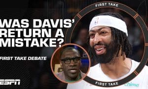 Stephen A. Smith, Shannon Sharpe and Carlos Boozer join Molly Qerim on First Take to debate if Anthony Davis’ return was a...